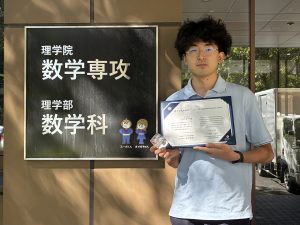 古郷優平さんは、「微分幾何学に現れる可積分系の準周期解とその曲面」の研究で受賞され、現在も理学院博士課程数学専攻で研究を継続されています。以下、古郷さんからコメントをいただきました。