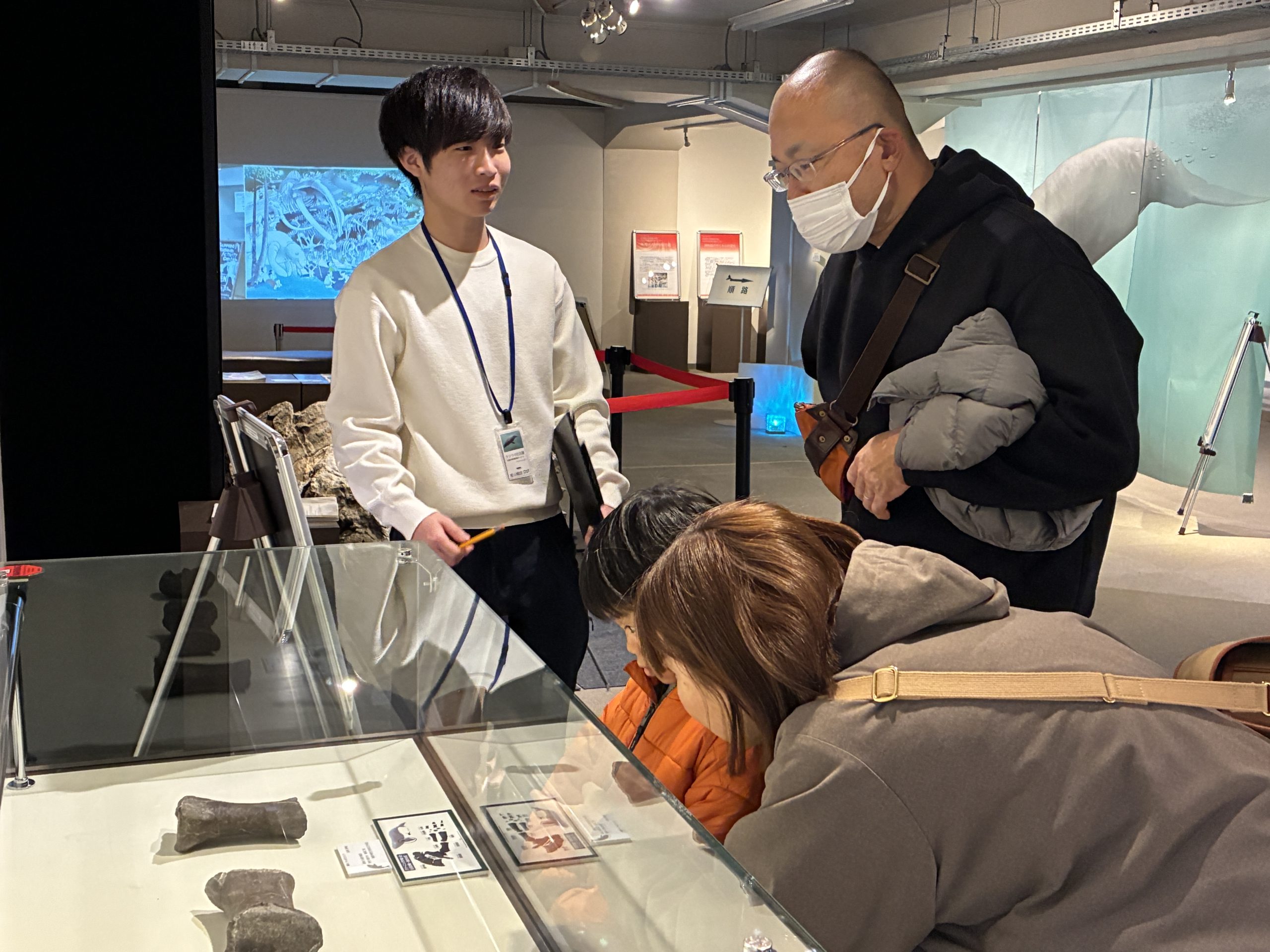 ミュージアムマイスター認定コースの一環として、2025年度企画展示「クジラの化石展-札幌市博物館活動センターのコレクションより-」では7名の学生が、博物館の展示解説ボランティアの方々とご一緒に展示解説に取り組みました。