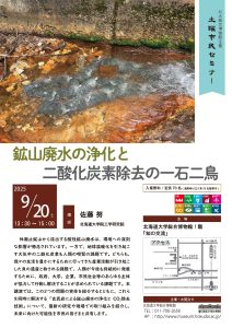 【9月20日開催】2025年度第6回土曜市民セミナー 「鉱山廃水の浄化と二酸化炭素除去の一石二鳥」