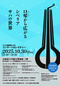 北海道大学文学研究院・北海道科学大学主催、北海道大学総合博物館共催 サハの口琴(ホムス)演奏家によるコンサートと演奏家によるサハ文化のレクチャーが10月30日に開催されます。